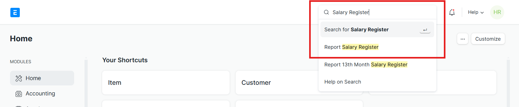 On the search bar, type Salary Register Report